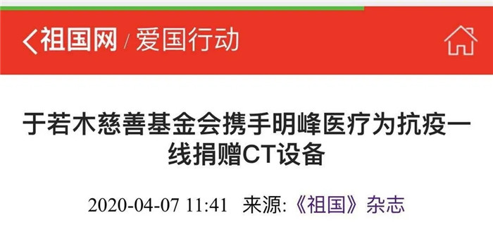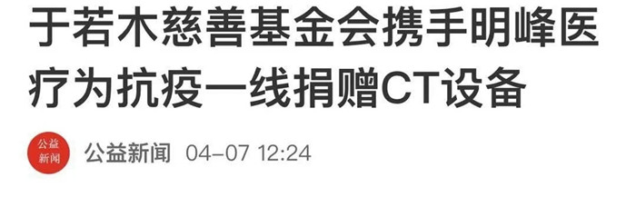 疫情爆發(fā)后,明峰醫(yī)療時刻關(guān)注疫情發(fā)展,并向奮戰(zhàn)在抗擊新型冠狀病毒前線的所有醫(yī)護人員、志愿者致以最崇高的敬意,攜手北京市于若木慈善基金會和基金會大隱公益專項基金,傾其所能為抗擊疫情做出貢獻。