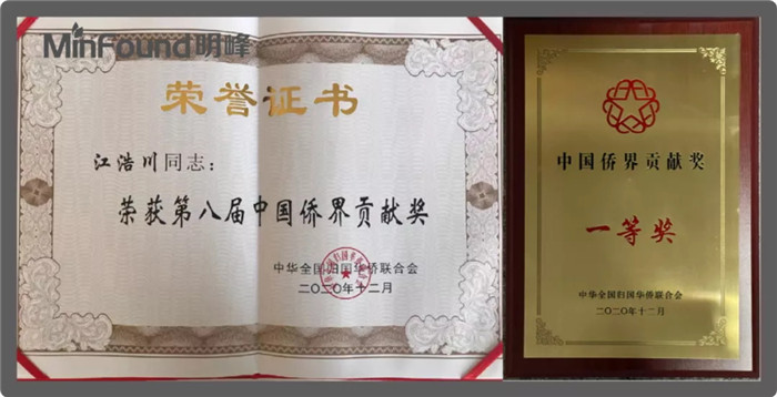 12月1日,中國僑聯(lián)“第八屆新僑創(chuàng)新創(chuàng)業(yè)成果交流活動”在北京隆重舉行。全國人大常委會副委員長白瑪赤林,全國政協(xié)副主席萬鋼,中國僑聯(lián)黨組書記、主席萬立駿等出席活動并為第八屆“中國僑界貢獻(xiàn)獎”獲得者代表頒獎。本屆“中國僑界貢獻(xiàn)獎”共表彰獲獎?wù)?25名,其中一等獎59名,二等獎66名。貢獻(xiàn)獎突出僑界人才在科研攻關(guān)和科技創(chuàng)新方面取得的成就,專業(yè)領(lǐng)域涵蓋了物理、化學(xué)、生物、天文、醫(yī)學(xué)、教育、經(jīng)濟(jì)、人工智能、電子通信、地球科學(xué)、海洋工程等30多個門類。明峰醫(yī)療總經(jīng)理兼明峰研究院院長江浩川榮獲“中國僑界貢獻(xiàn)獎”一等獎。