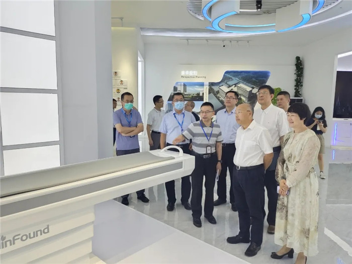 周國輝一行參觀了企業(yè)展廳和生產(chǎn)裝配調(diào)試車間,在明峰醫(yī)療聯(lián)合創(chuàng)始人潘華素、總經(jīng)理江浩川的陪同講解下詳細了解了目前的產(chǎn)品研發(fā)現(xiàn)狀、核心專利技術(shù)、全球布局及市場開發(fā)情況、抗疫期間所做的貢獻。隨后,周國輝與企業(yè)負責(zé)人座談,了解企業(yè)生產(chǎn)經(jīng)營情況和當(dāng)前存在的困難問題。